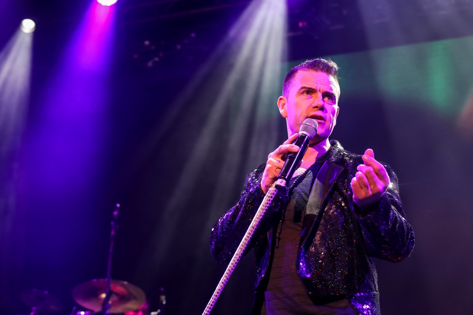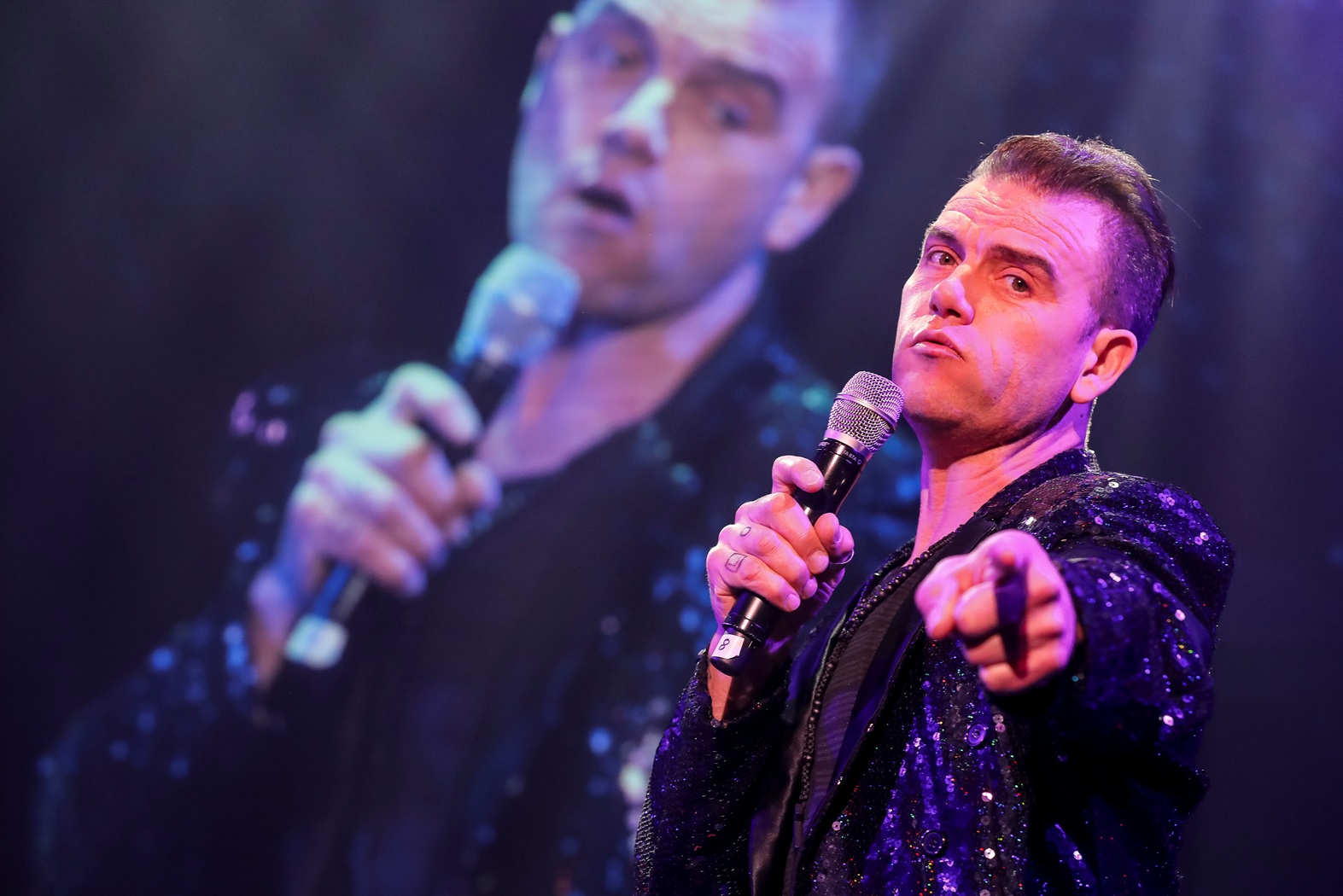 Opplev ein av verdas beste Robbie Williams tribute artistar i fyrste del med store hits som Let me Entertain You, Rock DJ and Angels.